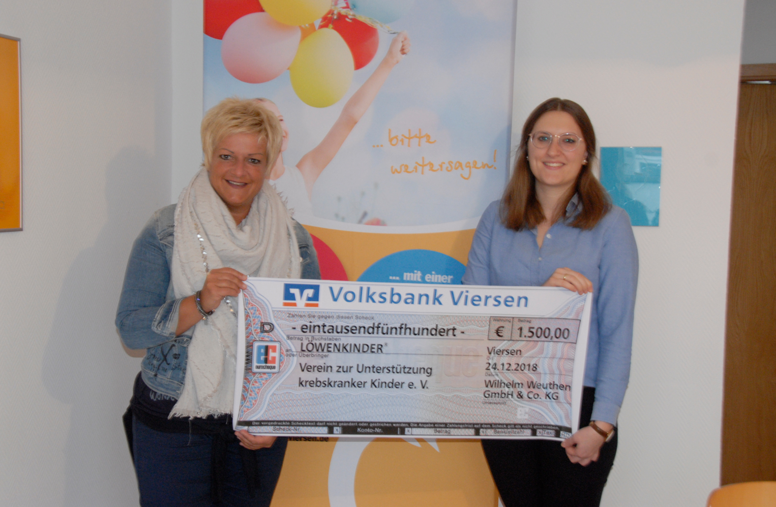 Auch 2018 verzichteten wir wieder auf Firmenpräsente für unsere Kunden und spendeten stattdessen an den Verein Löwenkinder in Viersen. Der Verein Löwenkinder unterstützt und betreut krebs- und chronisch kranke Kinder, deren Eltern und Familien. Außerdem unterstützt er regionale Krankenhäuser und Pflegeeinrichtungen, die erkrankte Kinder und Jugendliche behandeln, ausgesuchte Krebsforschungsprojekte, das Kinderpalliativnetzwerk Niederrhein und übergeordnete Dachverbände wie die Deutsche Leukämie-Forschungshilfe und die Knochenmarkspenderdatei.